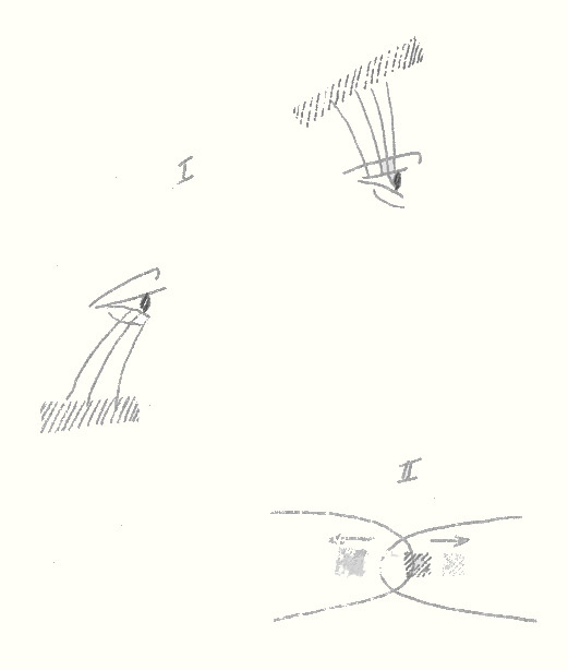 You can therefore say that today, in this fifth postAtlantean period, we are indeed different men in our sense-faculties from the characteristic men of the fourth period, the Greco-Latin people, This is all connected with what has been said before, During the time when spiritual forces still arose from the emotions, from sympathies and antipathies, even from the body in its hunger, thirst, its satiation, these spiritual forces poured into the sense-organs, And these spiritual forces, streaming up from the lower bodily nature to pour themselves into the sense-organs, are those which play the chief part for the eyes in giving life to the various shades of yellow and red, enabling these colours to be perceived, The time has now come when the reverse is the most important task for mankind, The Greeks were still organised in such a way that their beautiful world-concep tion was mediated through their senses, into which flowed their organic life permeated by spirit, In the course of centuries this spirit-filled organic life has been suppressed by men, Out of our soul, out of our spirit, we must infuse it with fresh life; we must acquire the faculty for making our way into soul and spirit – as spiritual science enables us to do. But acquiring this faculty through spiritual science we shall take the opposite direction. In the case of the Greeks the streams came from the body to pour into the eye (see red in diagram I); the reverse must take place with us; we have so to develop soul and spirit that the streams (see blue in diagram I) from the soul and spirit reach the human organisation; and we must receive these streams in the other senses as well as in the eye. The way for mankind in future must be in the reverse direction to that of the middle of the fourth post-Atlantean culture-epoch. Then the reflective man will once again become a knower of the spirit, but in another form, because of what comes to him from above. We have grown to be sensitive to the blue side of the spectrum.