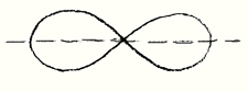 Then the third case is possible, that b < a. If b < a, we can still find values for the curve. We can always solve the equation and obtain values for the curve, ordinates and abscissae, even when b is smaller than a, only the curve then undergoes yet another metamorphosis. For when b < a, we find two branches of the curve, which look something like this (Fig. 7). We have a discontinuous curve. And here we come to the point where the mathematics itself confronts us with what I called the “palpably impalpable”, something that is difficult to grasp in space. For in the sense of the mathematical equation, this is not two curves, but one; it is a single curve in exactly the same way as all these are single curves (Figs. 3 through 5). In this one (the lemniscate) there is already a transition. The point which describes the curve takes this path, goes round underneath, cuts its previous path here and continues on here (Fig. 7). Here, we must picture the following: If we let the point M move along this line, it does not simply cross over from one side to the other, — it does not do this. It runs along the path just as in the other curves, describes a curve here, but then manages to turn up again here (Fig. 7) You see, that which carries the point along the line disappears here in the middle. If you want to understand the curve you can only imagine that it disappears in the middle. If you try to form a continuous mental picture of this curve, what must you do?