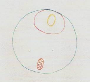 If we now look at the will, we can say something of this sort: If that is the spiritual cosmos (see diagram, circle) which, at the moment I will not characterise further — you know “spiritual cosmos” is very universal, one can always take only a part of it — then this (red) would be a certain part of the spiritual cosmos, namely, that to which our will- life, metabolic-limb-life, mainly belongs.