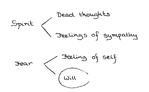 The other part into which fear is transmuted is our will. All our will impulses, everything on which our activity in the world is based — all this exists as fear before we descend into earthly life.