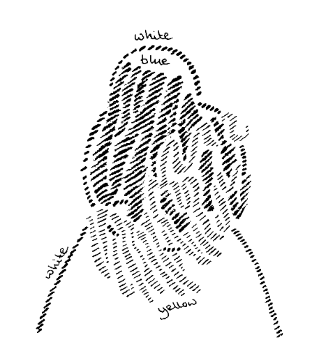 is in surging movement. The external, solid parts of our breast organization are only what our head sends down into this surging motion. To study the rhythmical human being we have to say that in this rhythmical surging the watery element and the airy element mingle together (see diagram, green, yellow). Into this, the head sends the possibility for the solid parts, such as those in the lungs, to be present (white). This surging, which is the real rhythmical human being, can only be studied with the knowledge given by Inspiration. So the rhythmical human being can only be studied with the knowledge given by Inspiration.