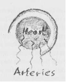 Suppose that a child is born whose blood circulation is too slow. For some reason, through some hereditary factor, it can happen that the child's blood circulation is too slow. Let us imagine this case. (See drawing.) Here is the child's heart, and here, its arteries; through both the blood is travelling too slowly. The heart is being formed from the head, but even when the head functions perfectly, the circulation can still be too slow. Thus, even though the heart is properly developed, the blood doesn't flow into it correctly. This is often the case in earliest infancy. The head is perfectly developed, but the blood flows too slowly into the heart. Poor circulation may result simply from keeping the child in stifling air. It cannot breathe properly, and its circulation slows down. The blood circulation may slacken also if the baby is not properly nourished. Then its blood cannot thoroughly penetrate the body. The head may be in excellent shape and try to form the heart aright, but the blood circulation remains sluggish. What happens in such instances is that, because the blood is not circulating well enough, certain substances that normally would be pushed down from the heart into the kidneys and expelled remain in the body; they stay in the blood. When these substances that should have been discharged stay in the system, the blood suppurates.