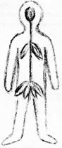 This is really not just a picture; the plant is truly contained within man. Of course, it develops in accordance with the human form. But imagine that I were to draw this plant in detail, sketching a real bulbous root and the various branches — in other words, a real tree. It would be inverted, however. Here it would have its branches, and the outermost tips would wither a little here and there; there you have the nervous system! The nervous system is truly an inverted plant within man that is continuously dying a little.