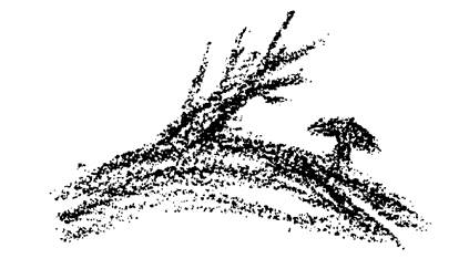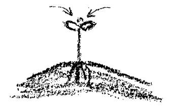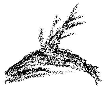 Nun muß man dem Kinde beibringen — und da wird man schon eher so vorgehen können —, wie, wenn hier die Erde ist (siehe Zeichnung), die Erde nun etwas aus wächst, einen Hügel erzeugt. Aber der Hügel, der wird von den Kräften der Luft und schon von den Kräften der Sonne durchsetzt. Er bleibt nicht mehr Erde. Er wird etwas, was zwischen dem saftigen Pflanzenblatt und auch schließlich der Pflanzenwurzel und der trockenen Erde mitten drinnen steht: er