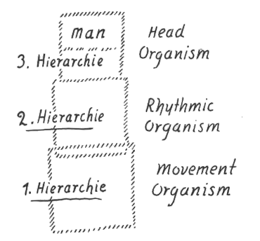 In our breast we bear the second Hierarchy — Exusiai, and so forth; there in our breast are the starting-points of their activity. And if we now descend into the sphere of our motor organism, if we enter our movement organism, then in this sphere the beings of the first Hierarchy are active — Seraphim, Cherubim, Thrones.