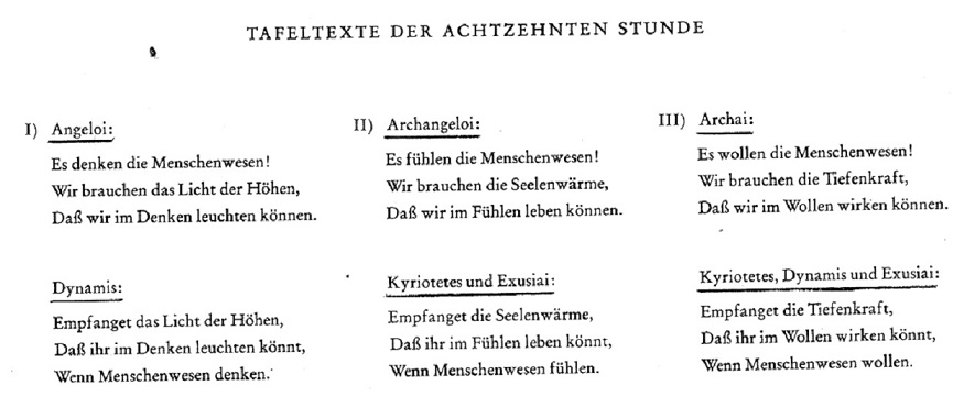 And then — impelled from within — we must turn our gaze to the highest spirits, the first hierarchy, who now turn to humanity in blessing. From them we hear: