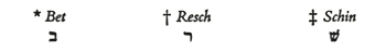 Call up before your souls this picture which I have just tried to paint for you, this image of the living weaving of spirit in a kind of matter; imagine too the inner soul-force which causes it to happen; concentrate for a moment on this to the exclusion of all else, and you will then have something approximating to what lived in an ancient Hebrew sage when the sounds B'reschit penetrated his soul. Bet [ 3 ], the first letter, called forth the weaving of the habitation in substance; Resch [ 3 ], the second sound, summoned up the countenances of the spiritual Beings who wove within this dwelling, and Schin [ 3 ], the third sound, the prickly, stinging force which worked its way out from within to manifestation.